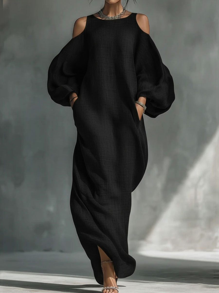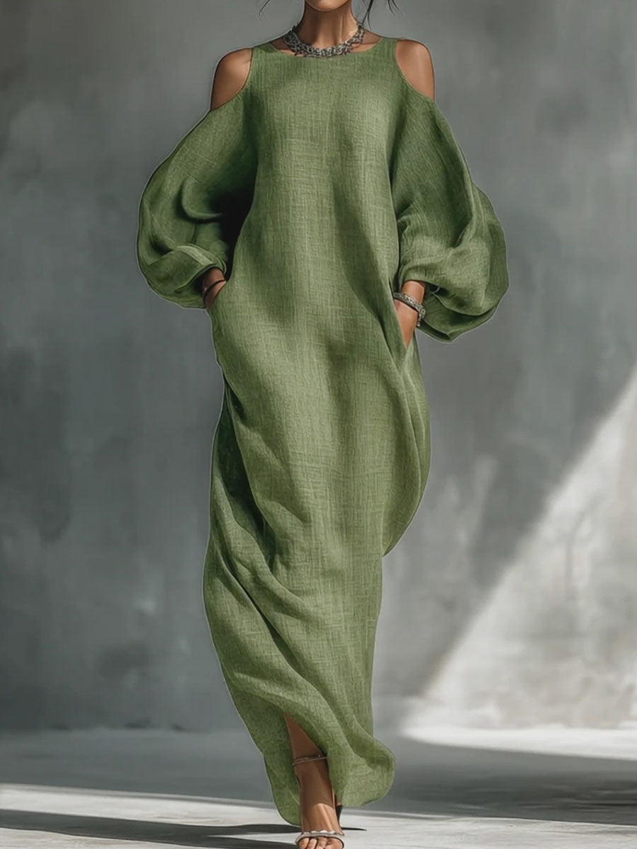 Women's Flowy Off-shoulder Round Neck Cotton Linen Long Dress