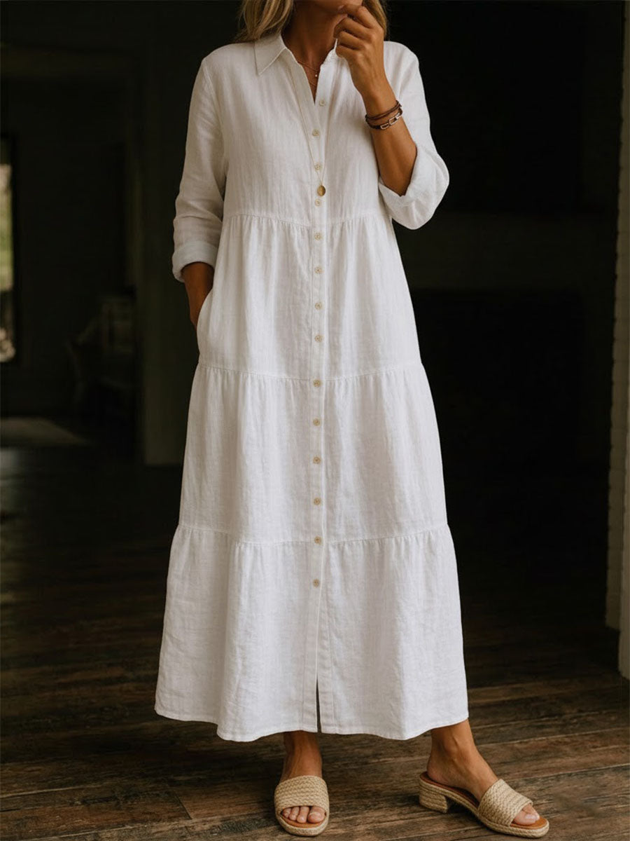 Women's Solid Color Casual Cotton Linen Long Dress